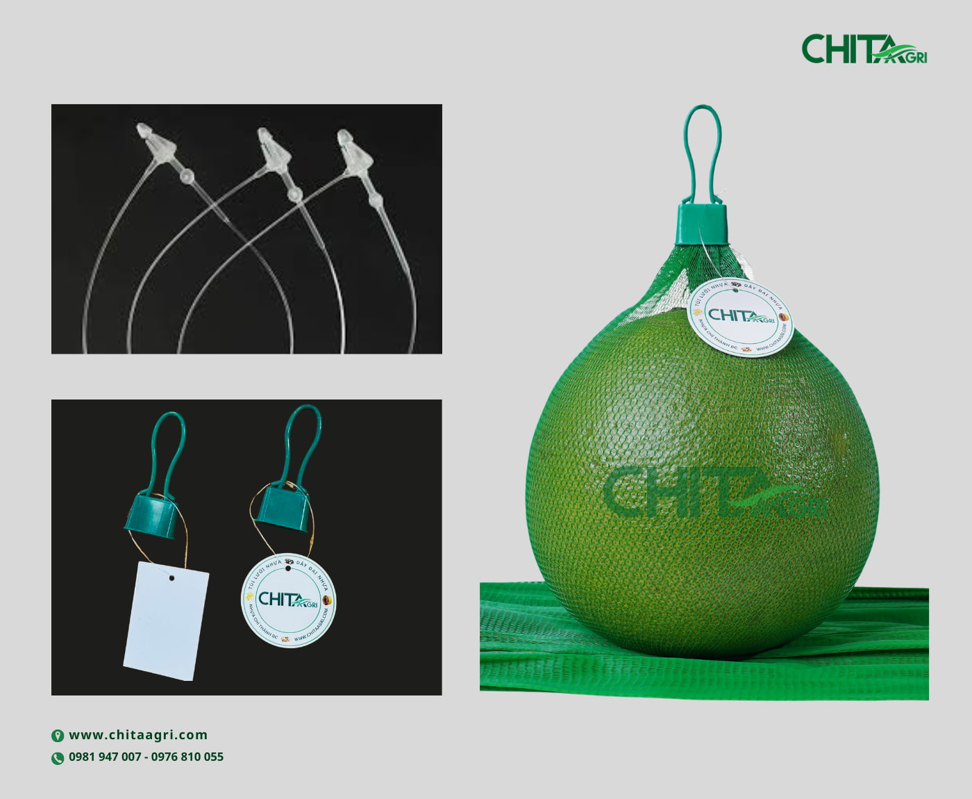 Dây treo tag/ nhãn mác bằng nhựa kết hợp túi lưới, khóa túi lưới Chita Agri và tem/tag giúp sản phẩm đạt chuẩn siêu thị, nâng tầm thương hiệu.