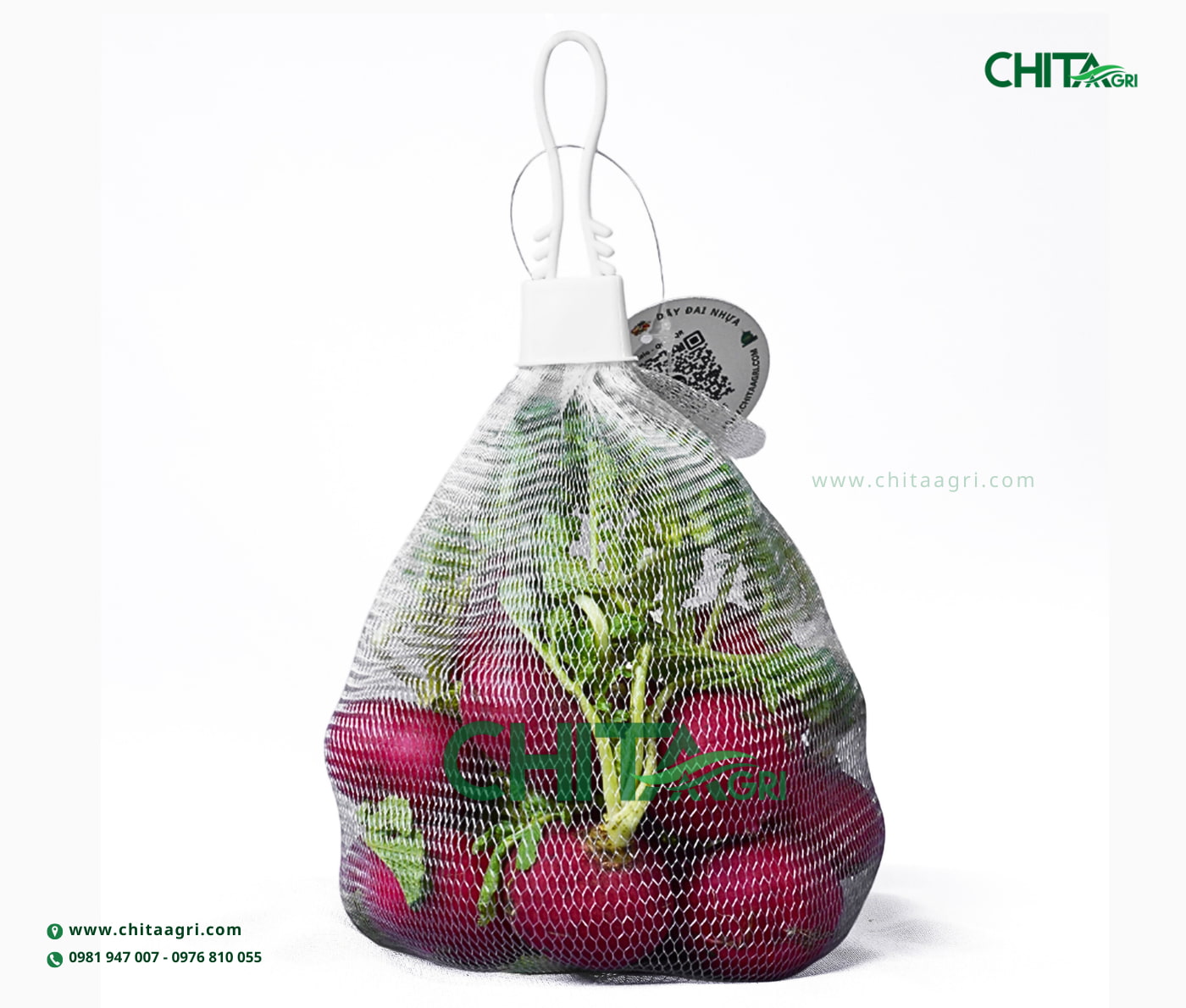 Túi lưới đựng củ cải đỏ Chita Agri được thiết kế từ nhựa nguyên sinh cao cấp, sở hữu độ thoáng khí vượt trội và độ bền tối ưu, giúp rau củ luôn tươi ngon và hạn chế dập nát trong quá trình vận chuyển.
