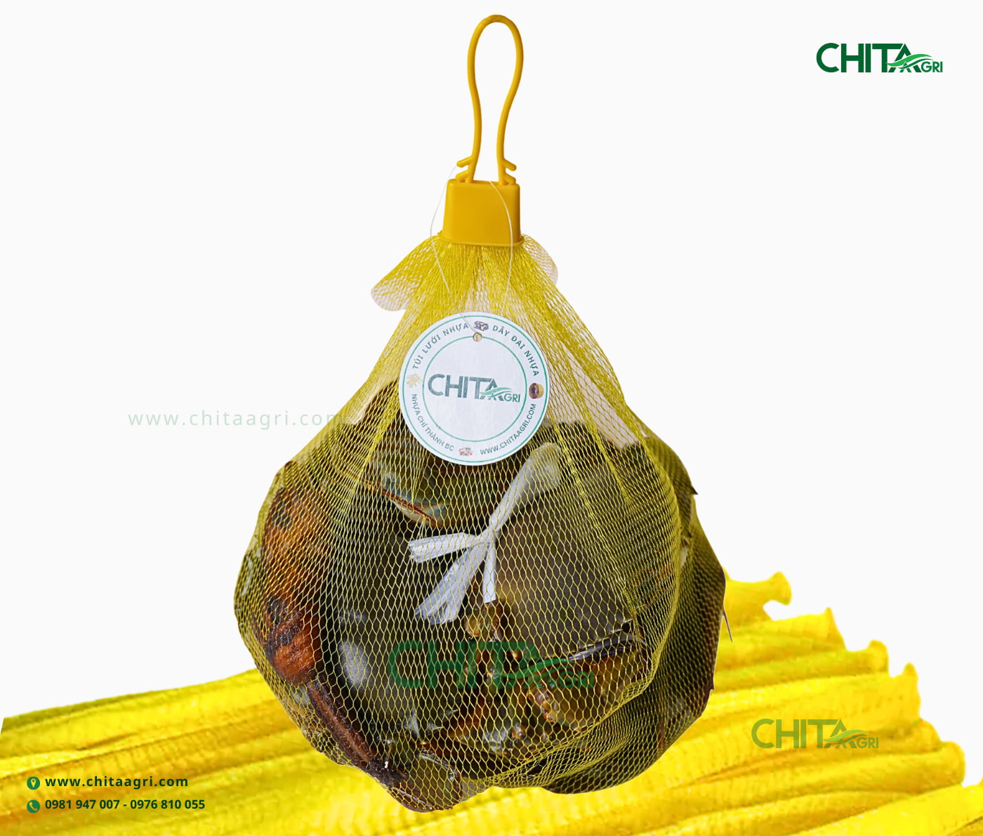 • Tùy chỉnh theo nhu cầu – Đáp ứng đa dạng thị trường: Các đơn vị sản xuất như Chita Agri có thể cung cấp túi lưới đựng cua, nghêu, sò với kích thước, độ dày, màu sắc, in logo hoặc tag nhận diện riêng – phù hợp từng loại hàng hóa và mục đích sử dụng khác nhau.