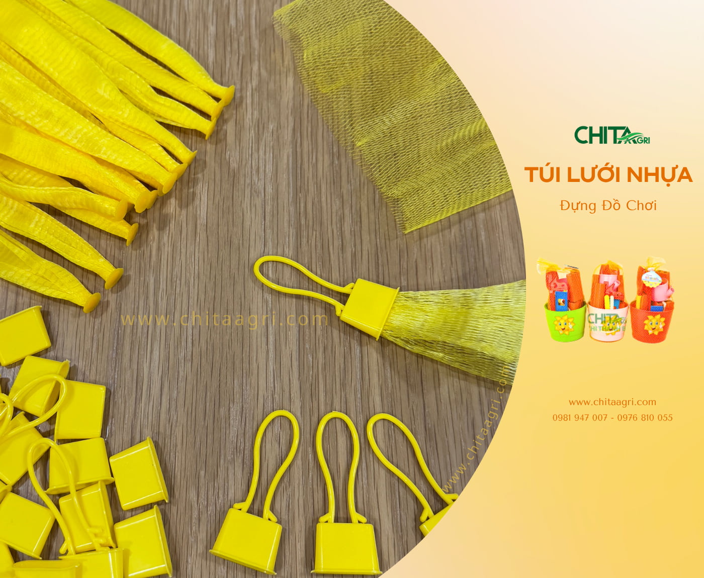 Chita Agri không chỉ cung cấp túi lưới đựng đồ chơi, mà còn các loại túi lưới đựng trái cây, túi lưới đựng rau củ, khóa túi lưới, dây đai nhựa, máy đóng đai, tạo nên hệ sinh thái bao bì toàn diện cho khách hàng doanh nghiệp.