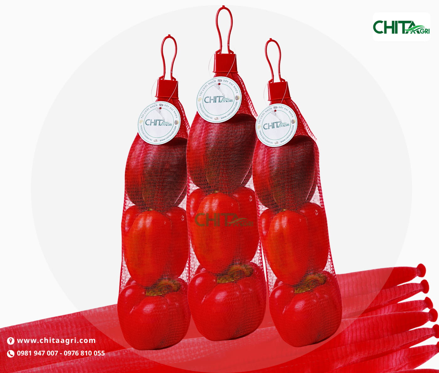 Nhựa Chí Thành BC – thông qua thương hiệu Chita Agri – là công ty sản xuất túi lưới chuyên nghiệp, cung cấp túi lưới đựng ớt chuông đạt chuẩn chất lượng xuất khẩu, tối ưu cho từng nhu cầu của nhà vườn – hợp tác xã – vựa trái cây – doanh nghiệp nội địa và cả hệ thống siêu thị.